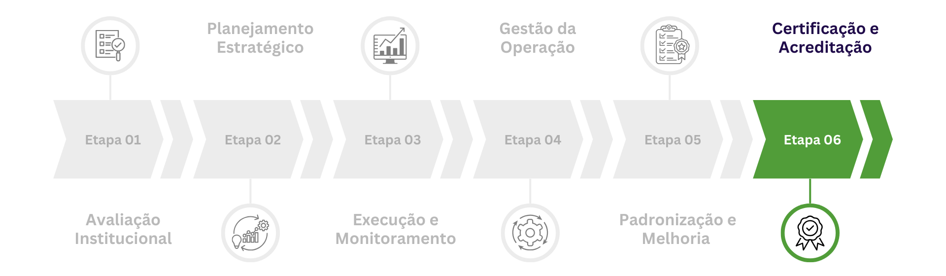 Etapa opcional, para instituições que desejam certificar seus sistemas de qualidade através das metodologias nacionais e internacionais de certificação e acreditação